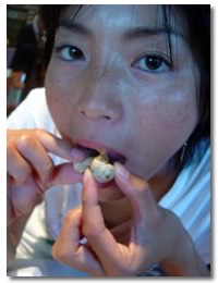 私には、いくつか、すごーく好きな食べ物がある。 そのひとつが「かたつむり」 日本ではなかなか食べる機会がないし、フランスでしか食べないと思っていたから、 ポルトガルで“ポスター”を見かけた時はびっくり、感動して、即行お店に入りました。 ポルトガル風は、小さくて、“お顔”がちゃんと見えて、お皿に山盛り出てきました。味付けは、とてもおいしく、おそらく、白ワインとオニオンと塩・コショウという感じ! 主人は、87「匹」 私は、148「匹」 おいしくいただきました。 CHIKAKO WONDER VOL 20 I LOVE YOU !!! I love to eat....snails. I found "Poster" in Portugal, Lisbon. I tried to eat.... My husband ate 82 I ate.....148!!!!!