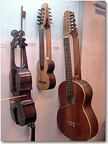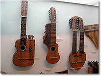写真:伝統的なフォルクローレの楽器たち。私達の常識からかけ離れた特徴的な楽器の作りがあの独特な音色を奏でる?(ラ・パスの楽器博物館にて)