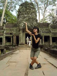 インドからバンコクに戻ってきた我々は、すぐに次の地、カンボジアのシェムリアップへと移動しました。 シェムリアップは言うまでもなく、アンコール・ワットに隣接する町です。 タイからカンボジアへと入ると、その違いに驚きます。 タイとカンボジアの国境の街ポイ・ペト、タイ側の国境を越えると、道端に座り込んだ物乞いやボロボロの建物が多く目に付くようになり、「カンボジアに入ったんだな」と実感することとなります。 長きにわたる内戦により、カンボジアの殆どの主要道路は破壊され、現在も修復作業は完了していません。ポイ・ペトからシェムリアップに向かう国道6号線も、以前からこの道を知る人は「すごく良くなった」と言いますが、初めてのツーリスト達はその穴だらけのデコボコの悪路に驚かされ、苦痛の表情を浮かべます。 インド以来体調が優れなかった妻も、この悪路によって決定的にやられてしまったのです。