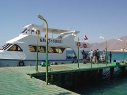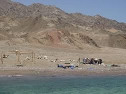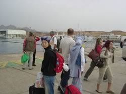 紅海を渡りさらに北東へ、目指すはシナイ半島Sinai Peninsular、ダハブDahab。ハルガダのフェリー乗り場に朝4時頃到着して船の出発を待ち、1.5時間程で半島へ到着。その後バスで更に1時間。 |