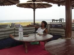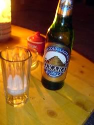 2日寝込んで元気になりました!ダハブDahabのベドウィン村にて。ここではビールも手軽に飲める。(こんなに手軽にビールが飲める場所はエジプトでもそうはない。)写真のSAKARA