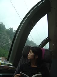 湖やアルプスを眺めながらの移動。1等車の"パノラマ車両"に乗るとご覧の通り、パノラマの景色が楽しめます。チケットを買う際は"PANORAMA
