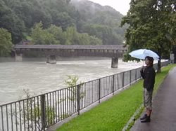 インスブルックはあいにくの雨でした。宿近くの川沿いを散歩。
