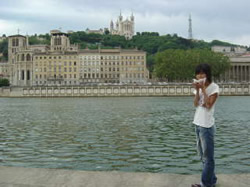 フランスだけにデザートも旨い。お馴染みクレープ&街中で買ったミルフィーユをソーヌ川沿いで頬張る私。