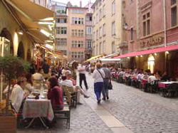 リヨンのレストラン街。地元の人も観光客もみんな夕食が楽しみ。