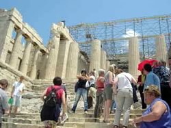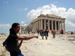 聖斗○矢、っていったらやっぱりパルテノン神殿でしょ!というあのギリシャの神殿の丘、即ちアクロポリスACROPOLISがアテネ観光の目玉。そのそばの古代アゴラANCIENT AGORAも散歩に気持ちいい遺跡群。 でも、オリンピック直前でアテネの街は大工事大会!パルテノン神殿も、高い金払って見に行って、この工事はないでしょうよ!絶対オリンピックまでに工事間に合いそうもないし…。