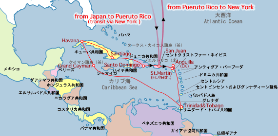 | ■ | 02/11〜02/15: | 成田『日本』発→ニューヨーク『アメリカ』経由→サンファン『プエルトリコ』 NARITA『JAPAN』→NEW YORK『USA』→SAN JUAN『PUERTO RICO』 |