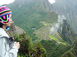 マチュピチュにいるとその全景を綺麗に見ることが出来ない。そこでまた登りたくなるのがマチュピチュの前方にそびえる峰、ワイナピチュHuayna Pichu。ここに登って見るマチュピチュはまた絶景。そもそもマチュピチュはそれより高いところからしか臨むことが出来なかったが故に発見されなかった都市。かなりキツイ階段道ですが、是非登ってみてください。