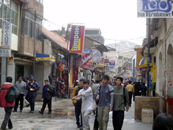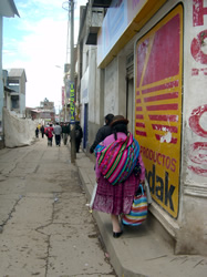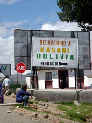 ○ ボリビアへ to Bolivia プーノを越えるといよいよ目の前がボリビアです。 プーノからチチカカ湖沿いをバスで約2時間、ペルー国境ユングーヨYunguyoからボリビア国境カサニKasaniまでのほんの少しの距離を徒歩で越え、ボリビアへと入っていくのです。ここからチチカカ湖畔ボリビアサイドへ、そして首都ラ・パスも目の前です!
