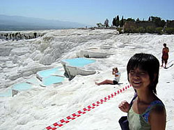 温泉が作り出した真っ白な石灰岩が生み出す幻想的な世界、パムッカレ。しかし最近は過剰なリゾート開発により温泉が年々出なくなっているそう。大変悲しいことです。ただしここは石灰岩もさることながら、自然と遺跡が最高に美しく調和していて、その点もここの大きな魅力だと感じました。